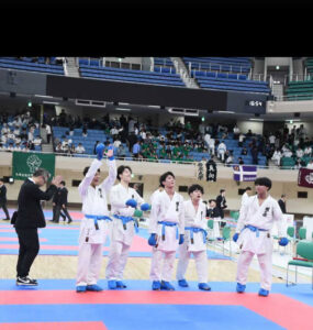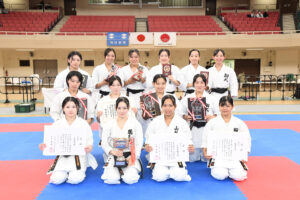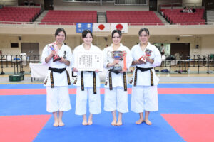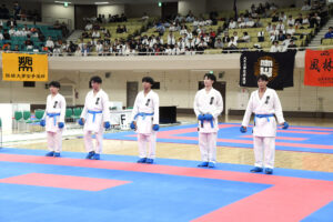 ◆女子団体組手[優秀選手]原田明莉(国士舘大学)/斎藤綺良理(国士舘大学)/立花怜紀愛(大正大学)/後藤星奈(帝京大学)/色川華音(帝京大学)/石原水晶(帝京大学)/千葉満利愛(法政大学)