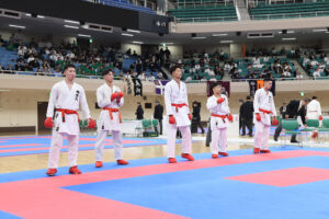 ◆男子団体組手[優秀選手]小川凌平(国士舘大学)/小椋優心(国士舘大学)/浅野詠太(国士舘大学)/堀口堅護(国士舘大学)/松浦友哉(駒澤大学)/竹内絃喜(帝京大学)/船戸来輝(帝京大学)/海野陽乃汰(明治大学)