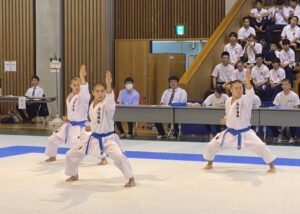 R7静岡県高校新人大会(形競技)結果! Posted on 2025年10月20日2025年10月20日 by 御殿場西高等学校空手道部 10月18日(土)静岡県武道館にて静岡県高等学校新人大会(形競技)が行われました。部員全員が一丸となって大会に挑み以下の結果となりました。応援してくださった方々ありがとうございます。東海大会に向けて部員一同精進してまいります。 <結果> 男子団体形 優勝 男子個人形 優勝 菅原弥 2位 丸子幸志郎 3位 伊藤泰暉 女子団体形 優勝 女子個人形 優勝 山田琥珀 2位 溝上天音 3位 吉田一桜 3位 小林みひろ