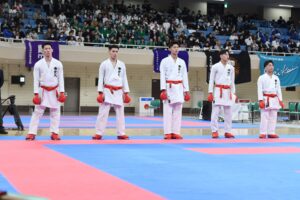 男子団体組手では、帝京大学が決勝で京都産業大学を2ー2の同スコアも内容勝ち(7ー4)で下し、3年ぶり7度目の優勝を果たした。